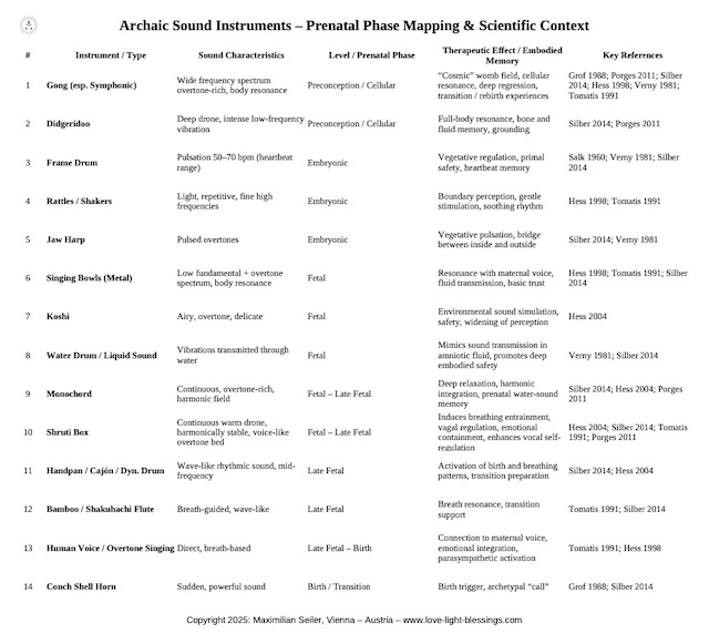 Besonders spannend ist die Erkenntnis, dass bestimmte Klänge mit frühen Entwicklungsphasen unseres Lebens verbunden sind – sogar mit der Zeit im Mutterleib. Forschende und Heiler beobachten, dass verschiedene archaische Instrumente unterschiedliche pränatale Stadien ansprechen. Das erklärt, warum manche Klänge so tief berühren: Sie rufen Erinnerungen wach, die älter sind als jedes bewusste Denken.